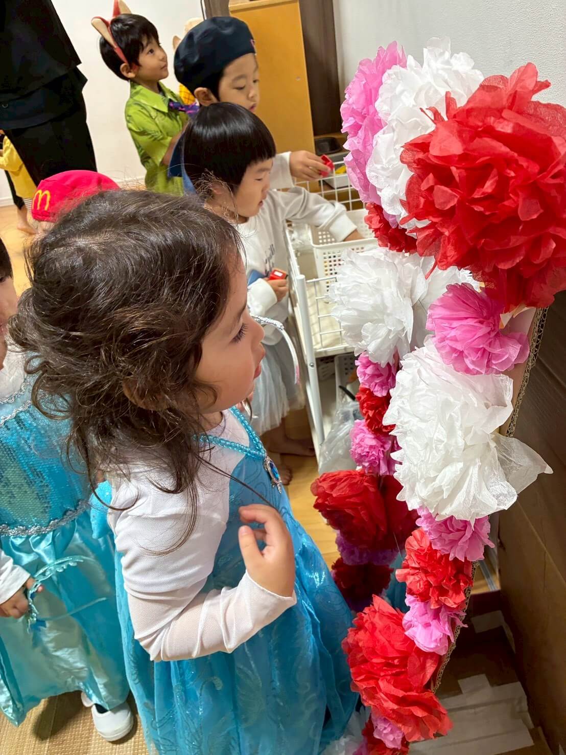 また、園内ではハロウィンの由来に触れ、絵本の読み聞かせを聞いたあと、お菓子探しやゲーム、手作りランタンの装飾などを行い、ハロウィンならではの活動に夢中で取り組む姿が見られました。