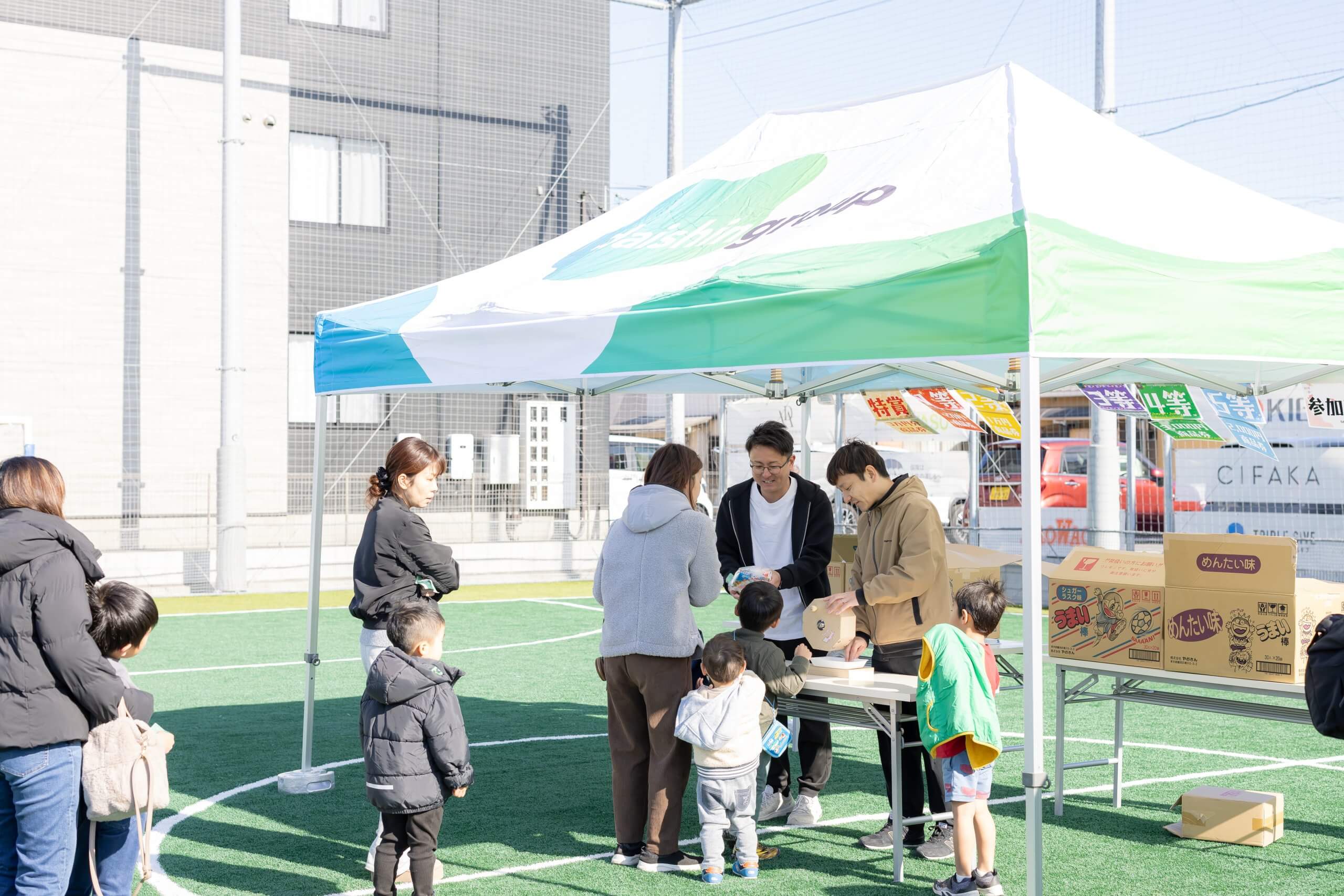 ガラポン抽選会では、アクティブスペースみらいに通ってくれているお子さまが、みごと特賞に当選しました。当選の瞬間には周囲から温かい拍手が送られ、会場全体が盛り上がりました。
