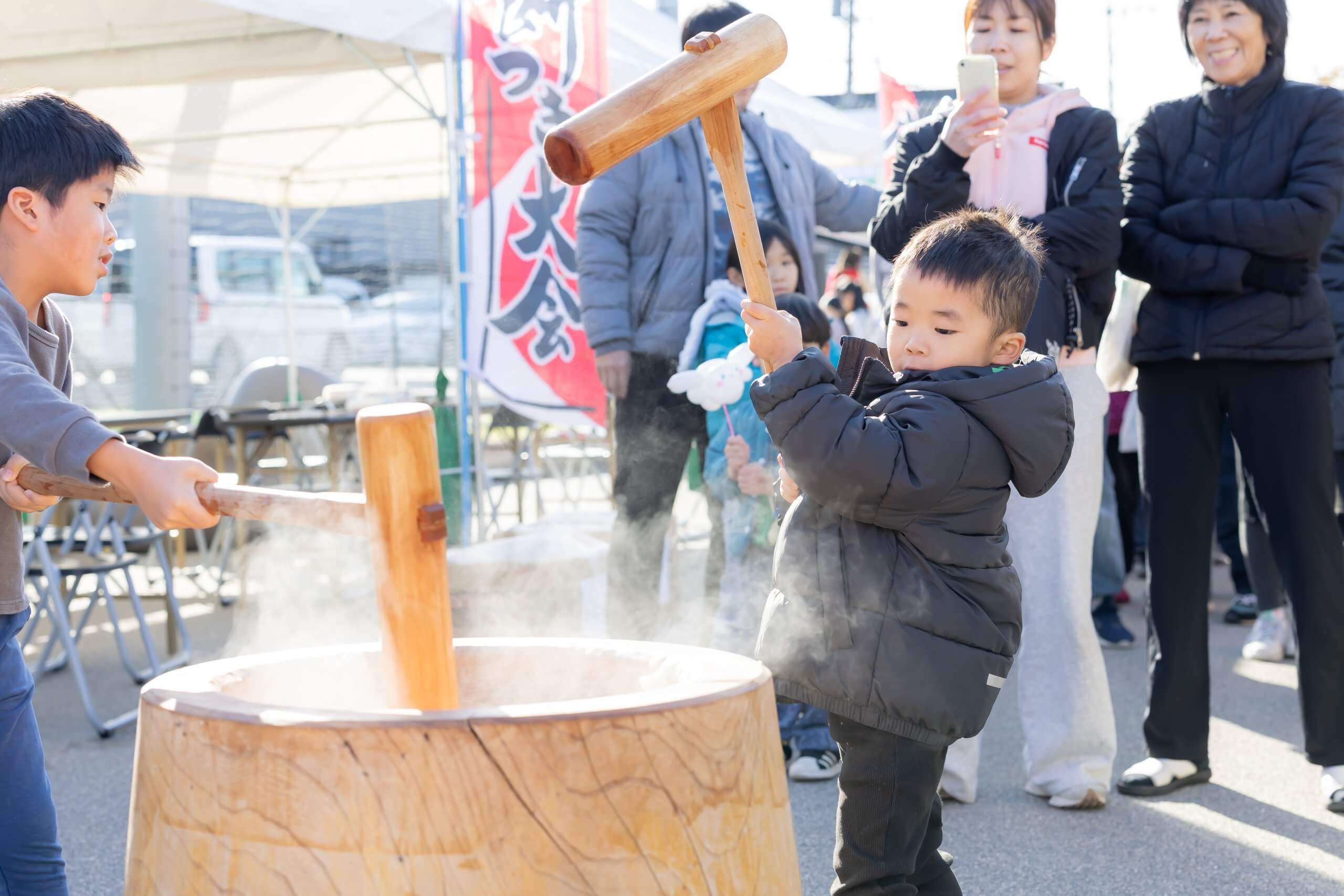 今年で2回目となる餅つき大会。当日は、地域のみなさまやダイシングループ各事業所のご家族のみなさまなど多くの方にご参加いただき、会場は終始にぎわいを見せていました!