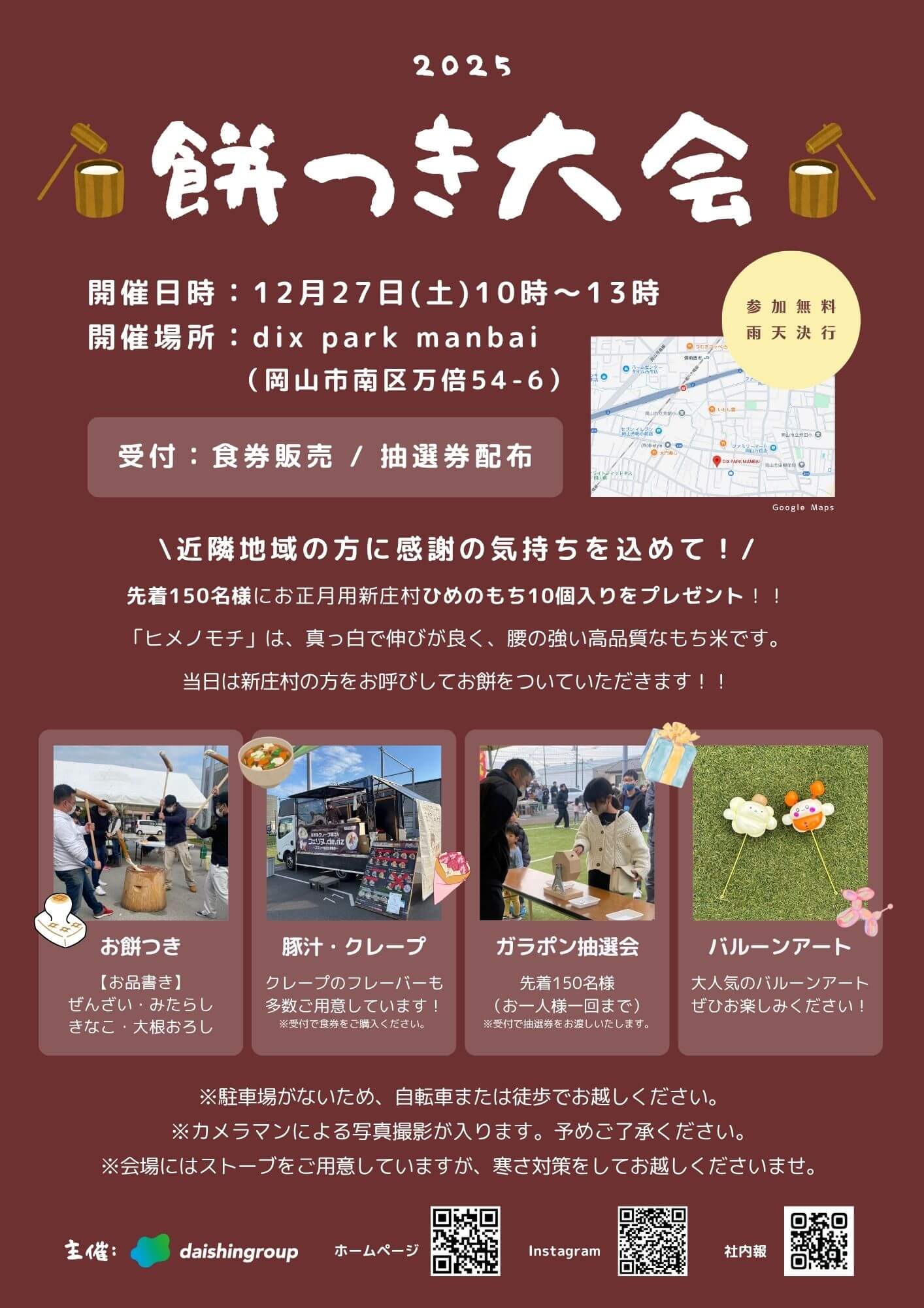 2025年12月27日(土)にダイシングループ主催の「餅つき大会」を開催します!